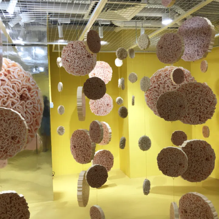 Upon entering the attraction, the first thing that greets you is a room full of dangling instant noodles.