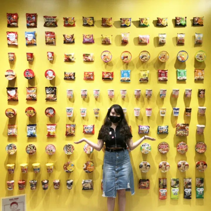 Located on the second storey of the exhibition is a wall plastered with over 120 packets and bowls of instant noodles — it looks pretty similar to the one in Japan!