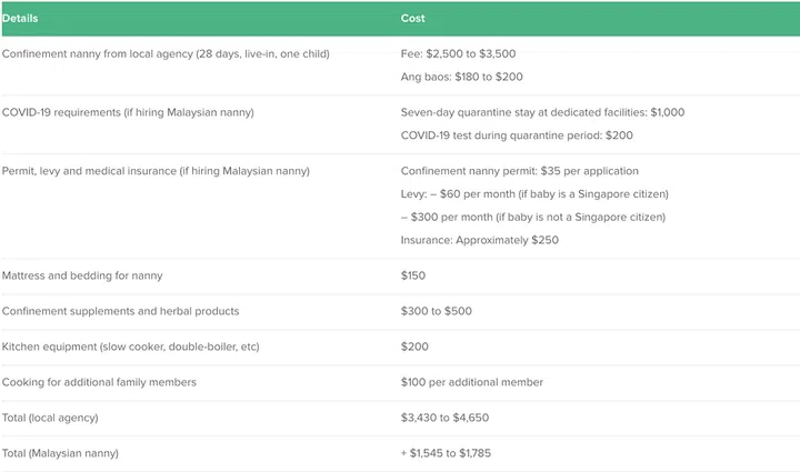 Hiring a confinement nanny, plus other associated expenses, can end up costing several thousand dollars. Here's what you need to consider