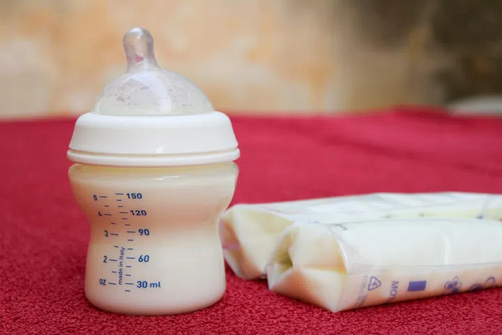 An alternative to using bulky milk bottles is to store your expressed milk in pre-sterilised milk storage bags (note that whatever container you use must be transparent, not opaque). It is advisable to store them in 100ml portions — both to observe the 100ml carry-on liquid rule as well as to have single servings ready for baby’s feed.