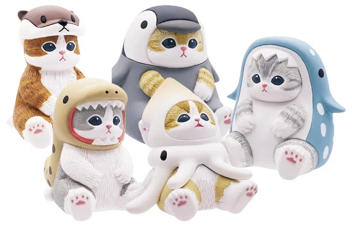 The shark Mofusand cat is somewhat the signature character from the label but this blind box features the doe-eyed cat in various animal costumes like a dinosaur, fox and even a cuttlefish.