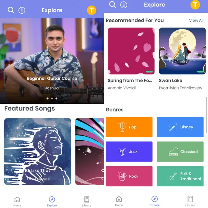 We find that Ultimate Guitar is more suitable for older teens and above. This app is for serious learners who want to master everything about the guitar. Each lesson (from their extensive list of courses) can last anywhere between 30 minutes to almost an hour. The instructors of the courses take deep dives into all the concepts so that you really master each element. Because of this, while the interface is sufficiently full of vibrant pops of colours, little kids might tire of the lessons quickly.
