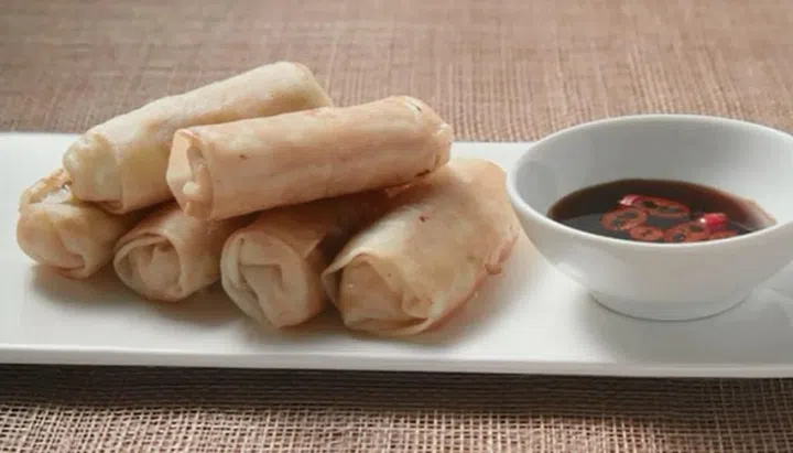 Spring rolls symbolise wealth and get their name because they are traditionally eaten during the Spring Festival (also known as the Lunar New Year). When you eat these fried delicacies, you're supposed to utter the lucky saying 黄金万两 which translates to "thousands of golds" - a wish for prosperity.