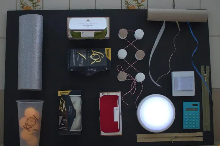 Putting it together took me less than an hour. Just follow your sketch and start by glueing various textured items in the coffee pod boxes.Then stick on the velcro tapes at the back of everything, place them in an aesthetically pleasing manner and you've got yourself a busy board!
