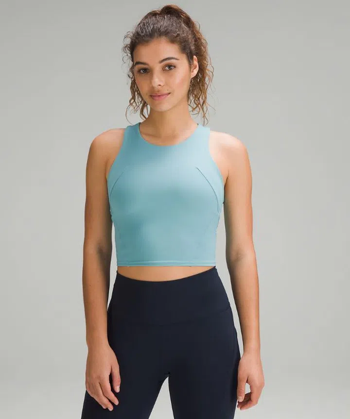The Lululemon Wunder Train Racerback Tank Top features a built-in shelf bra that provides support and coverage that makes you feel comfortable and confident.