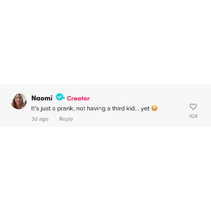 Naomi revealed in the comments that the entire thing was just a prank and she is not, in fact, pregnant.