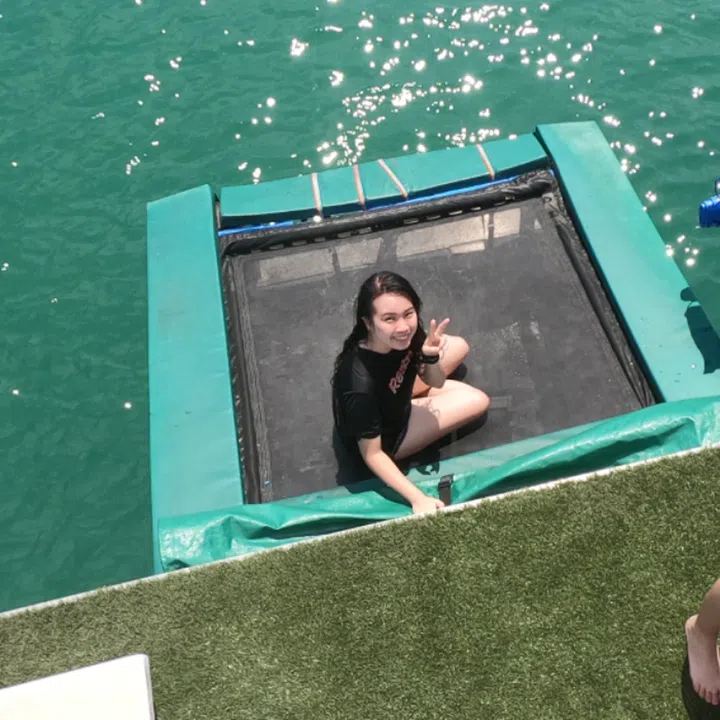 It comes equipped with features like trampolines, jump platforms, a slide and a diving board. From the pictures alone, it looked like one of those floating aqua parks in Langkawi.
