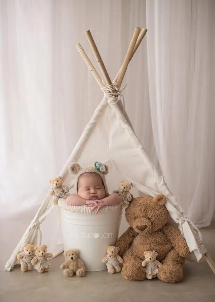 Going for a more earthy, neutral and brown colour palette? Bows And Ribbons Photography has elevated cosy set-ups as well as two photographers to take cute pictures of your newborn in a comfortable environment. Do note that their newborn photography sessions are only available on weekdays between 10am-1pm, to catch the best sunlight for the photos. Your photos will take a week to process before you get to choose your favourite ones. They will be professionally edited and sent to you four weeks from then.