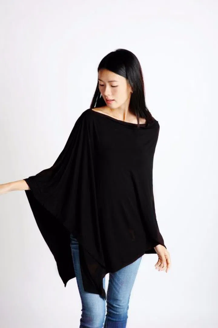 This dual-purpose kimono jacket cum nursing cover is both functional and stylish so you can wear it well past nursing days. Simply button up at the top, flip the stretchy and breathable jacket around and you’re ready to latch or pump at the office. The brand also offers roomy t-shirts that double up as nursing covers.