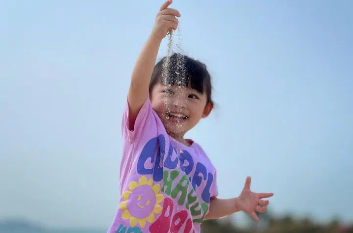 Mr Foo wanted to take fun snaps of his daughter at the beach. But as she was focused on building sandcastles, her gaze was fixed downward.