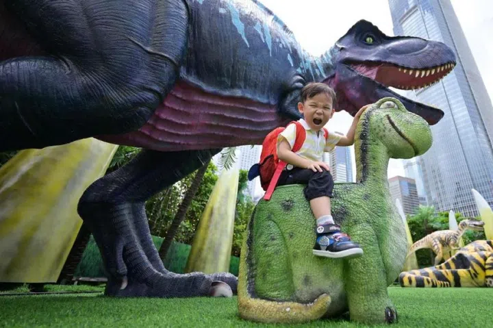 ST executive photojournalist Lim Yaohui encouraged his five-year-old son Jun An to give a mighty roar as he sat on a dinosaur sculpture near the Hong Kong Observation Wheel on June 12. PHOTO: LIM YAOHUI