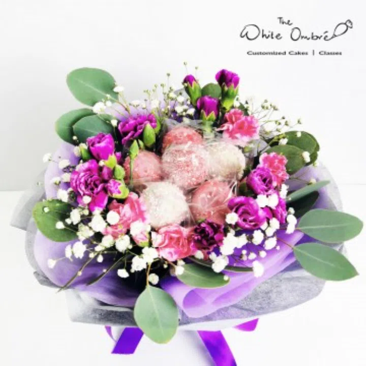 Here’s a creative take on a bouquet and cake bundle. The White Ombre’s Mother’s Day cake pop bouquet features six individually wrapped cake pops amidst beautiful flowers, assembled into a sweet bouquet. The cake pops are made with no nuts, no pork and lard, and no alcohol.