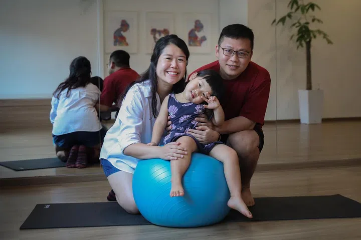 Yoga teacher Ho Kin Ing (left) relied on her husband Tan Peng Yong to support her through postpartum depression. They have three daughters, including three-year-old Beatrice. ST photo: Taryn Ng