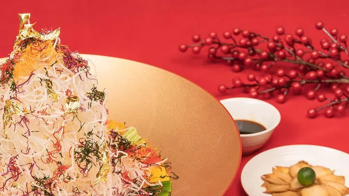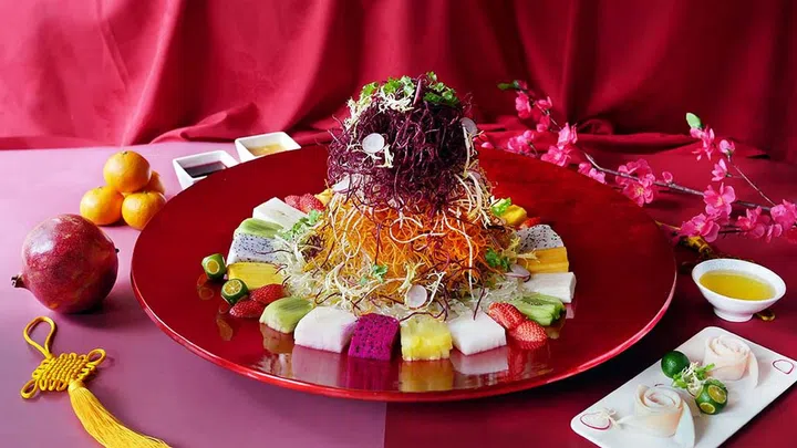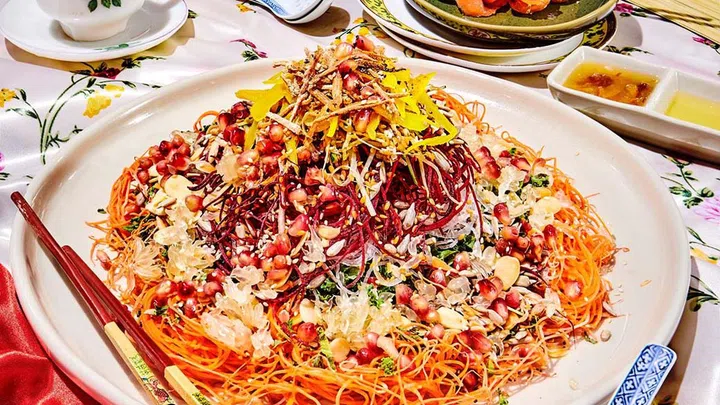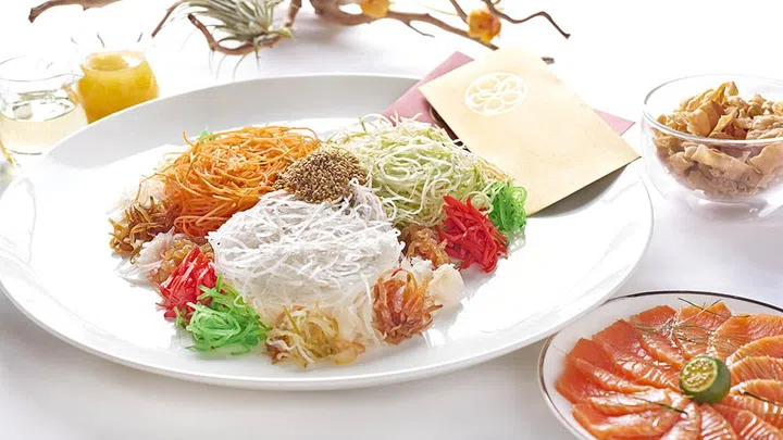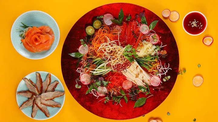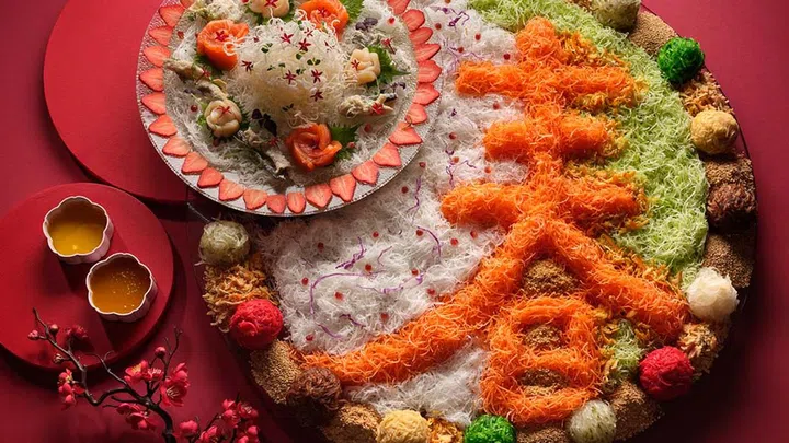 A yusheng salad is a must-have at just about any Chinese New Year reunion dinner because it symbolises starting the new year on the right note