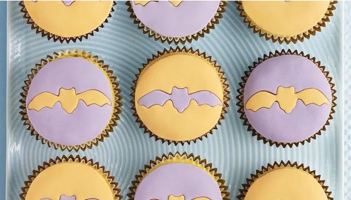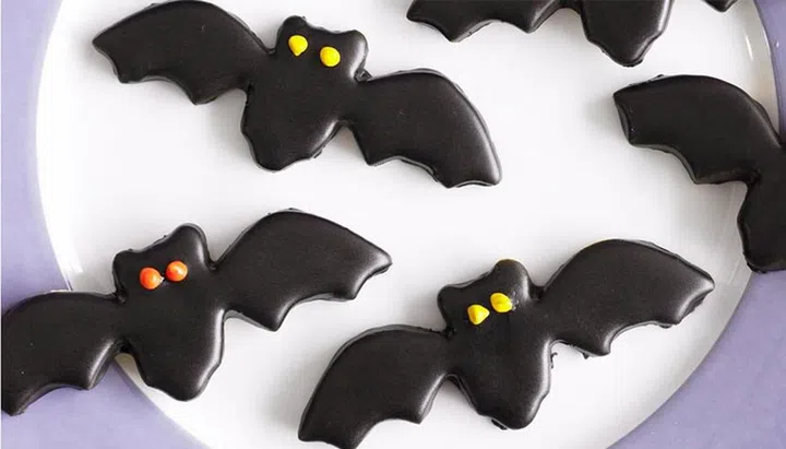 To make Halloween eerily delicious for the kid in all of us, unleash these rainbow choc chip bat biscuits coated in glace icing.
