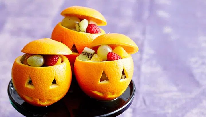 Who says you need pumpkins to make jack-o'-lanterns? These smaller versions using oranges are great as well for serving up fruit salad!