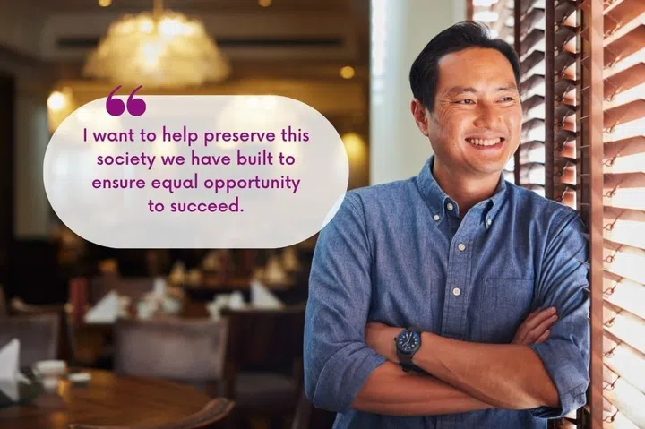 As a parent, it’s my responsibility to enable my child to succeed. To do that, I work hard to help create a society he will be proud to call home. This society will equip him with skill sets necessary to give him a brighter future and he will have greater confidence to take our country forward. That’s why I decided to join politics; I wanted to contribute to the right governance that will help preserve this society we have built to ensure equal opportunity to succeed. I want to be proud of what I have left behind for my child.