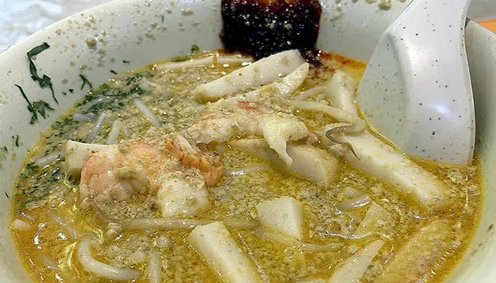 The combination of noodles, spicy gravy, boiled prawns and strips of fishcake makes every mouthful a delight.