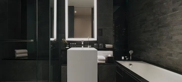 The bathroom is spacious, sleek, and equipped with all the essentials. Credit: The Clan Hotel