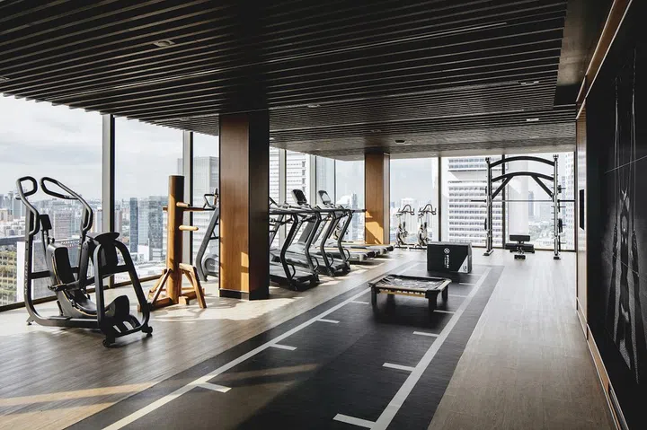 The Sky Gym offers a stunning view and an impressive array of equipment, including a Wing Chun wooden dummy. Credit: The Clan Hotel.