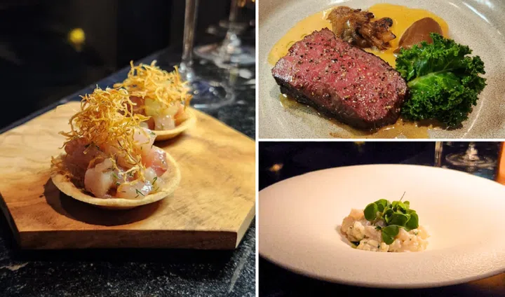 Dive into dishes that meld European flair with Asian flavours. Clockwise from left: Hamachi toro tartlet, beef short ribs, and Hokkaido scallop tartare. Credit: Michelle Lee/The Singapore Women's Weekly