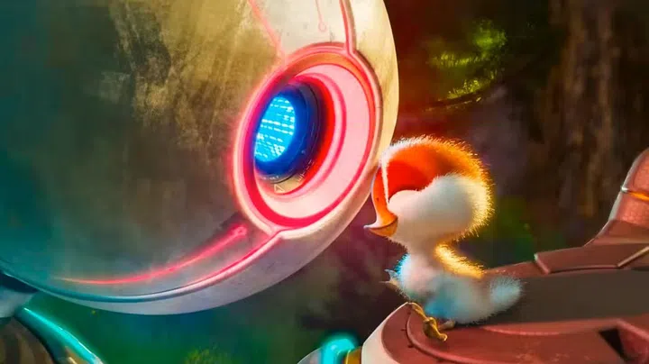 Brightbill imprinting on Roz, as the first object he sees after hatching. Image: Universal Pictures