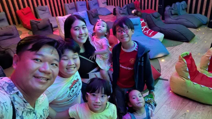 Kelly with her family of five kids at the cinema. Photo: Kelly Ang