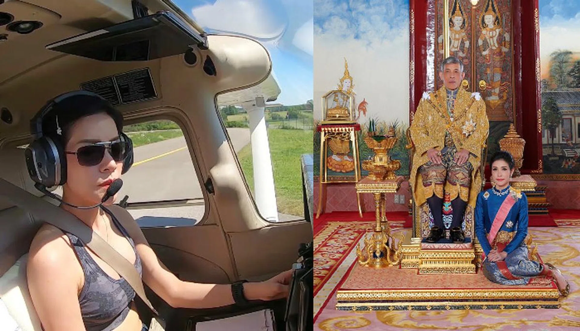 Among the photos of Major-General Sineenat Wongvajirapakdi, the Thai King's consort, are images of her wearing a camouflage-printed sports bra.