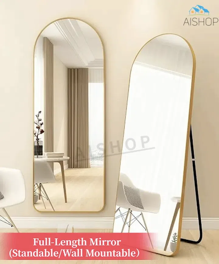 If you favour round edges over square-framed mirrors, then this merged traditional and modern mirror has a large arch over the top and slight curves for the bottom two corners. It can either be leaned on the stand or hung on a wall.
