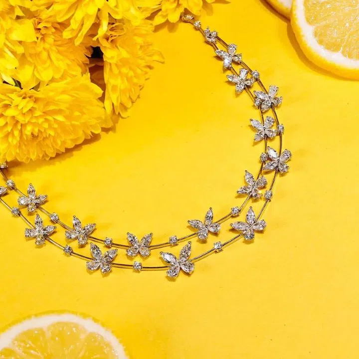 Highlights from its exquisite collection include this 18K white gold diamond necklace set with 52 marquise shaped diamonds, 34 pear shaped diamonds and 25 round diamonds totalling 27.58 carats (pictured above).