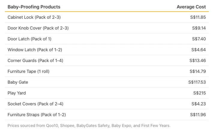 Thankfully, there is a surplus of corner guards and edge tape for purchase. With corner guards, you can blunt any hit on your baby’s head when they are learning the ins and out of your home. A 1-4 pack of corner guards goes for about S$13.46, though it’s important to ensure measurements fit your intended furniture before buying. Similarly, edge tape made of a foam material can help soften a blow if your baby were to accidentally hit their head against a side table. You can buy a roll of furniture tape for about S$14.79 online.
