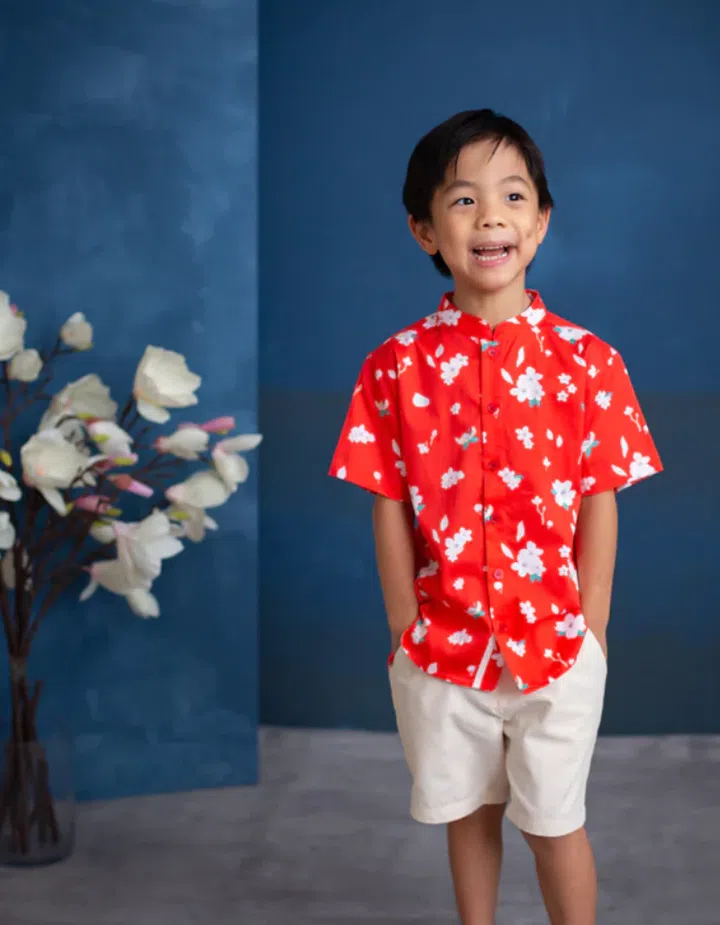 A smart shirt is something all boys need for those dressier family dinners or photo day in school. This floral shirt in bright red is a great addition, and is cut from soft breathable cotton for all-day comfort.