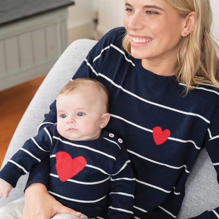 Each purchase comes with a matching baby sweater for tots aged 3 to 6 months, and mummy’s sweater comes with side buttons for easy nursing.