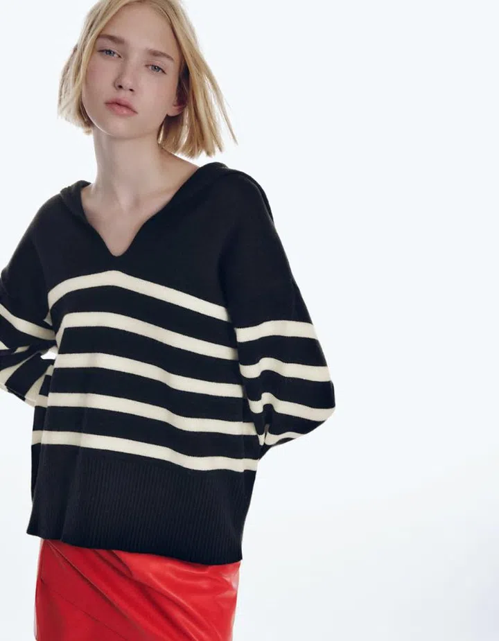 This slouchy piece comes with a nautical-inspired polo collar, which helps draw attention to whatever necklace you choose to pair this with.