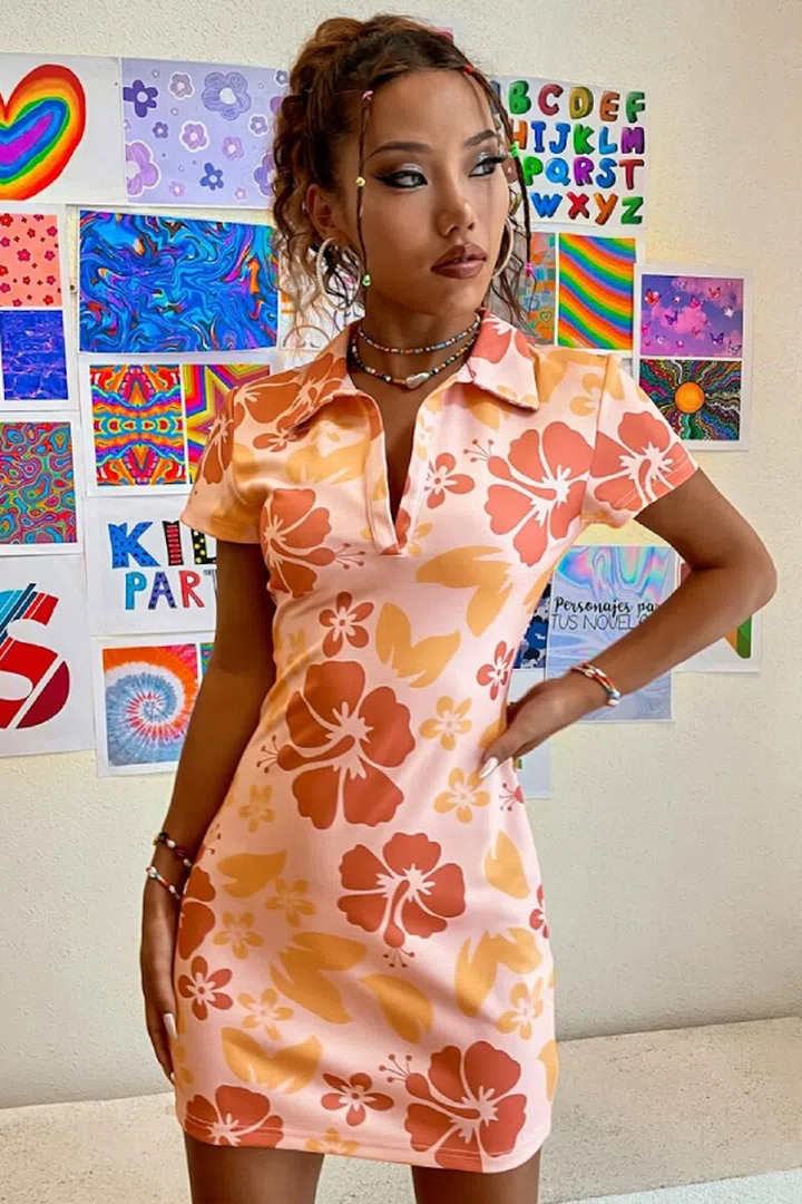 This slim fit mini frill dress makes the perfect outfit for picnics. It features a bold floral print and feminine frill details that accentuate your décolletage. We think it’ll go great with a denim jacket and a pair of ankle boots for a “model-off-duty” look, or even a pair of strappy heels for your date night out.