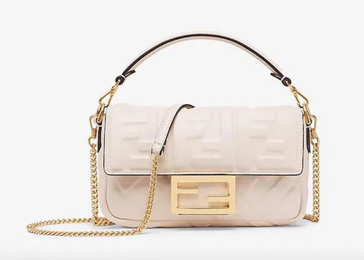 Fendi’s classic Baguette bag features not only the FF logo, but it is also made with leather crafted with FF monogram. These elements give the bag a unique visual impact.