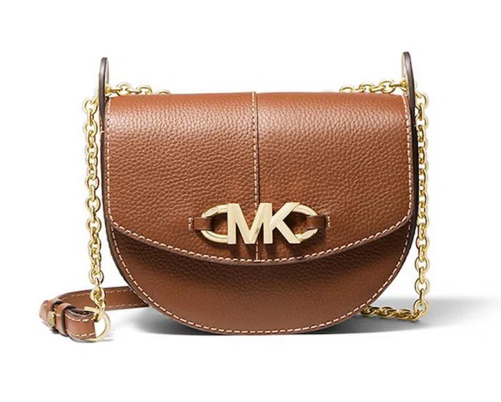 It isn’t difficult to identify MK as Michael Kors. This saddle bag features gold hardware and a chain strap set against brown leather. The classic silhouette makes this bag easy to use on work and off-days.