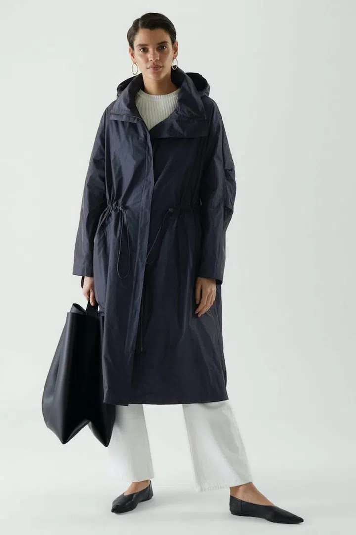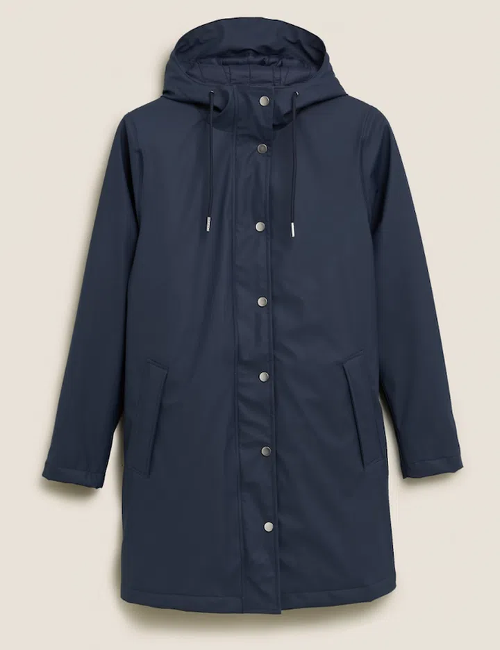Also available in beige, this trench coat-style parka is made with a durable water-repellent finish to ensure your body stays dry during a downpour. Remember to carry a brolly, as this doesn’t come with a hood.