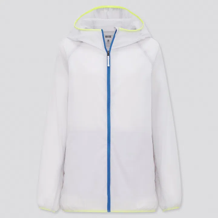 Made with lightweight water-repellent nylon fabric, this Uniqlo parka (with a hood) will keep you warm, and can be folded into a convenient interior pocket. It is also available in navy.