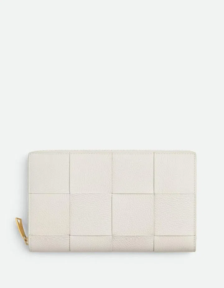Featuring the classic intrecciato weaving pattern that the Italian house is known for, this long wallet by Bottega Veneta comes fitted with a whopping 12 card slots, two main compartments and a zipped coin slot.
