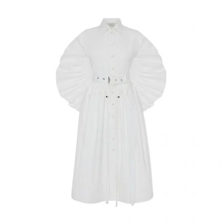 The shirt dress has become a fail-proof wardrobe piece to fall back on when it comes to dressing up for work or play thanks to its polished-meets-effortless appeal. The dress has popped up in several brands for Fall/Winter 2021, with newfangled details like elaborate balloon sleeves at Alexander McQueen’s and mini hemlines as seen at Valentino and Balenciaga.