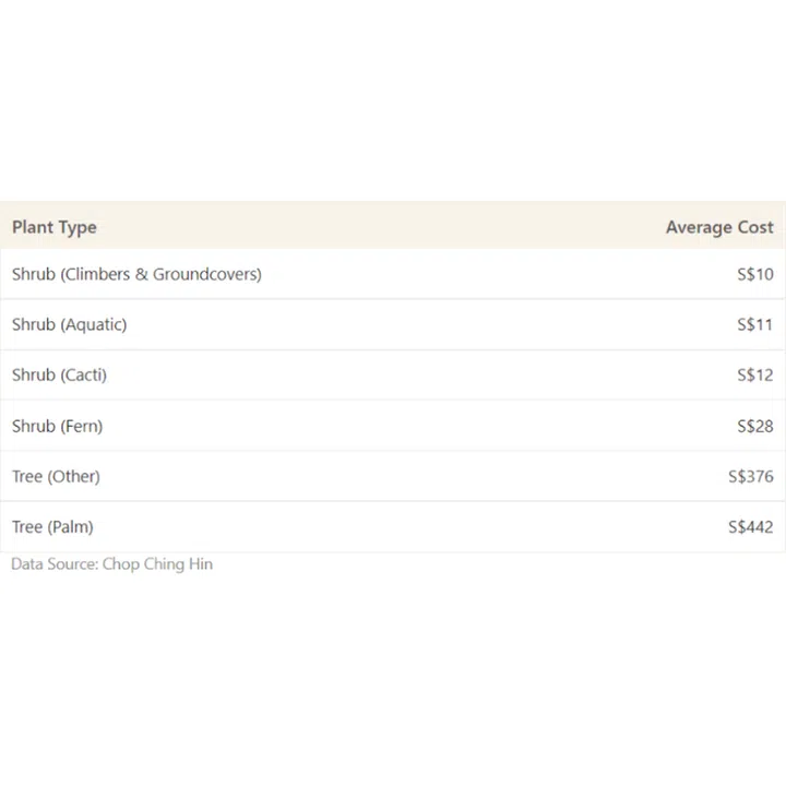 Landscapers and gardeners may also be required for routine upkeep. Gardeners will be able to trim your shrubbery, mow the lawn, pull out weeds to keep your garden healthy and beautiful on a weekly or biweekly basis. Of course, you always have the option to do the gardening yourself if the foundation of your garden is already there. In this case, you'll have to invest in the plants and the gardening tools. You can buy plants from nurseries or rescue a second-hand plant from sites like Carousell. Typically, large trees will cost the most, ranging from $5 for saplings to a few thousand dollars for mature varieties. Smaller shrubs like ferns and ground covers are much cheaper, typically costing S$10-S$30 per plant. You'll also need gardening tools like trowels and shears, which can be bought at nurseries or e-commerce sites like Lazada for roughly $20 per tool.