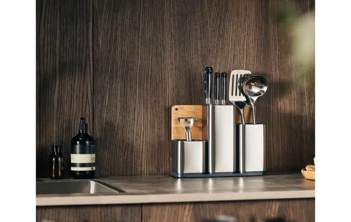It's sleek and sits oh-so-stylishly on your countertop, the Joseph Joseph Kitchen Utensil Holder Knife Block and Cutting Board Set is a good solution to help keep your kitchen essentials nicely stored away.