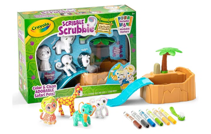 Give your little artists something fun to do with this Crayola Scribble Scrubbie Safari Oasis set. It comes with six washable markers and collectible animal figurines that can be coloured and washed repeatedly.