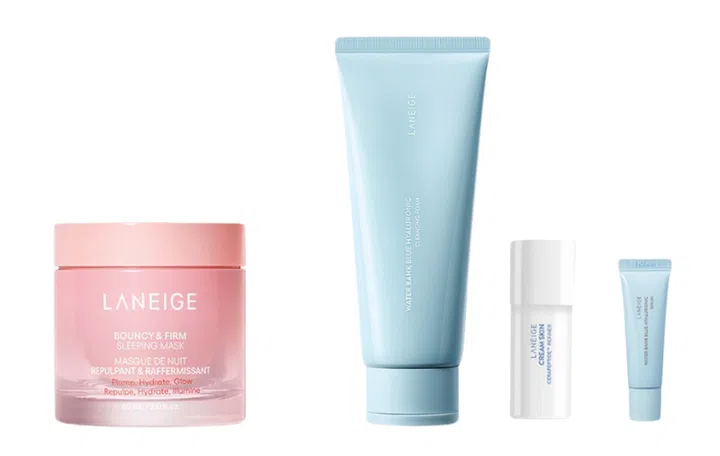 At more than half off, this Laneige bundle is worth every penny and comes with a Laneige Bouncy & Firm Sleeping Mask, Laneige Water Bank Blue Hyaluronic Cleansing Foam, and additional freebies.