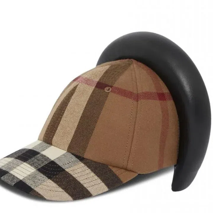 Now, this is a statement piece. This experimental design by Burberry combines a headband into a baseball cap, which makes it totally retro chic.