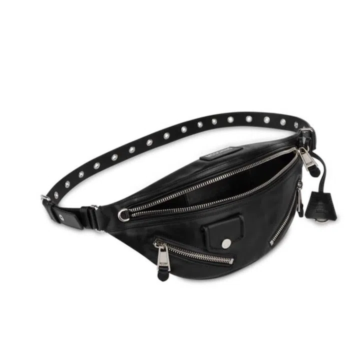 For something a little edgier, look over to this number by Moschino. Inspired by the iconic biker jacket, this calf leather biker waistpouch comes with a functional zip and flap with a snap button on the front, so you can easily stash and secure your items in your bag while you’re on the go. But don’t let the small size fool you — in fact, there’s enough room to hold a surprising amount with this bag.