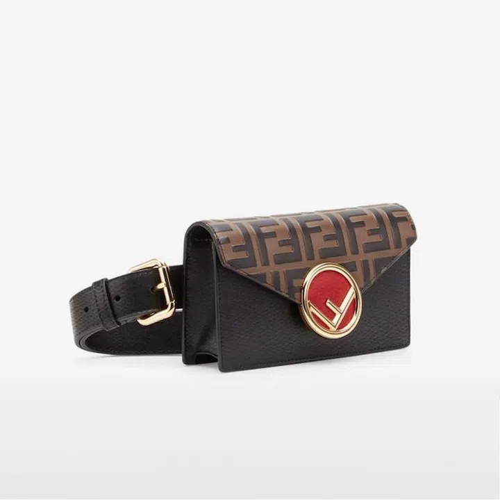 Add a pop of colour and texture to your look with this trendy piece from Fendi. Here, the bag is made of black leather with the iconic FF pattern in a raised print on the flap and hand-painted in black. Like many bum bags, this piece can be worn on your waist or even slung on your shoulder thanks to its chain shoulder strap.