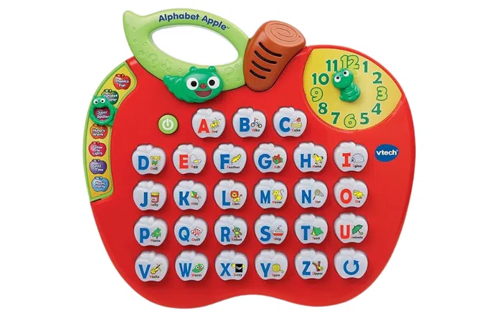 How cute is this oversized, fun and educational Alphabet Apple from VTech? Ideal for toddlers and up, the alphabet learning music board helps with learning, memory, number and letter recognition, and early music skills. The interactive toy features 26 light-up buttons, 29 songs and eight activities.