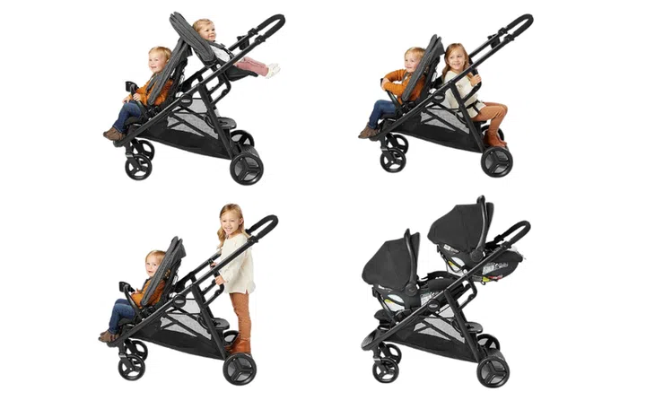 Highly versatile, the Ready2Grow Double Stroller from Graco is ideal for families with young kids and baby. It’s designed to be used in different ways including a bench seat and standing platform for your toddler to ride on while you push baby around. It’s still compact in size, folding up into a single stroller from its typical two-stroller seats.